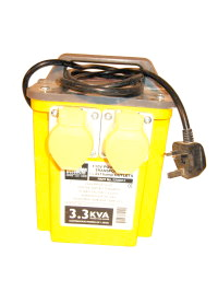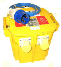 Supply 13A/1P BS1363, 240V Capacity 1.5KVA short term Outputs 2 x 16A/1P Ceeform, 110V |